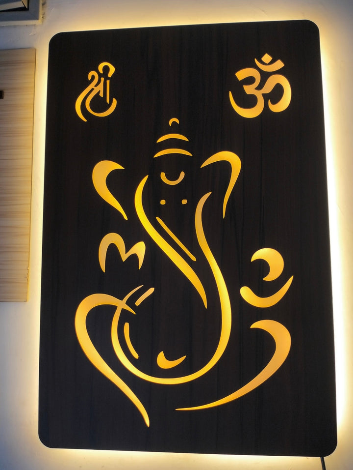 Divine Ganesh Ji Backlit Wall Hanging | Modern Wooden LED Wall Art for Living Room & Home Decor
