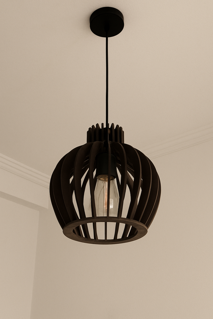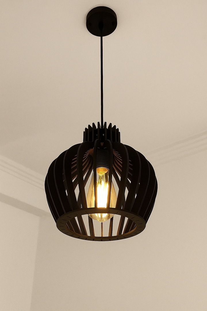 Bring warmth and elegance to your space with the Simko Orbit Pendant, a beautifully handcrafted hanging lamp made from premium laser-cut MDF wood. Designed in a stylish spherical cage form, this pendant lamp blends modern aesthetics with a natural wooden finish, making it a perfect choice for both contemporary and traditional interiors.